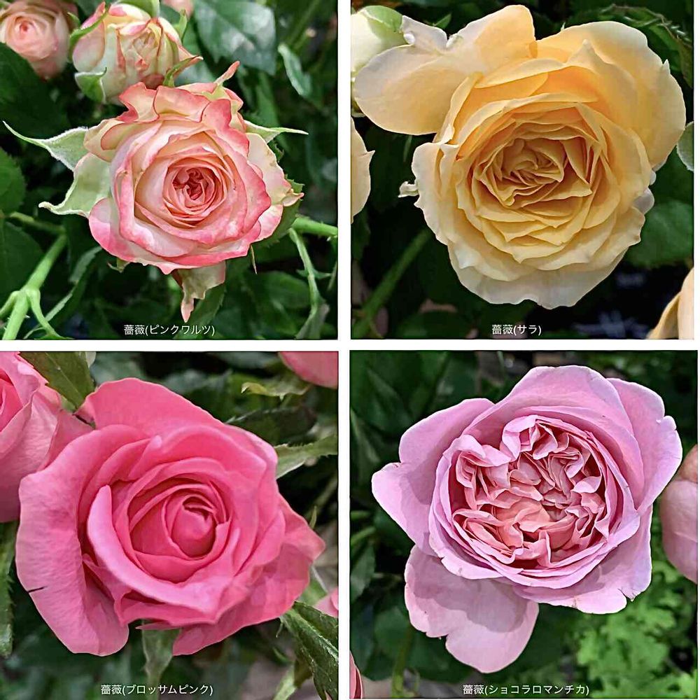 それぞれ、ピンク系2つ。黄系、ピンク系そして紫系の4つのバラ。
