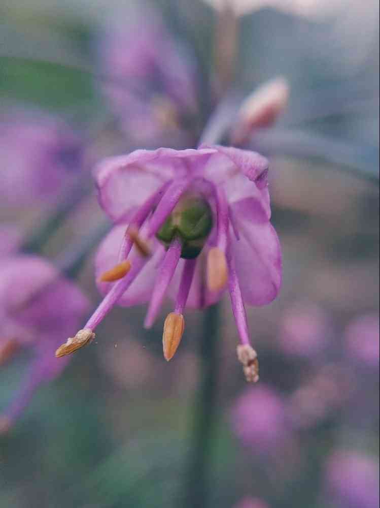 畑のらっきょうの花です。100均のマクロレンズで。虫じゃないよ~。