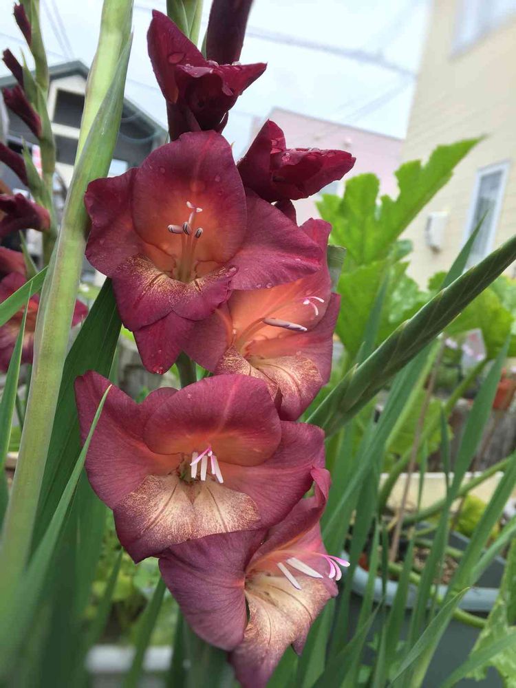 グラジオラスも咲きだしました😍今回はダークカラーでせめてみましたよ🤣パープル系も咲きそうです✌️