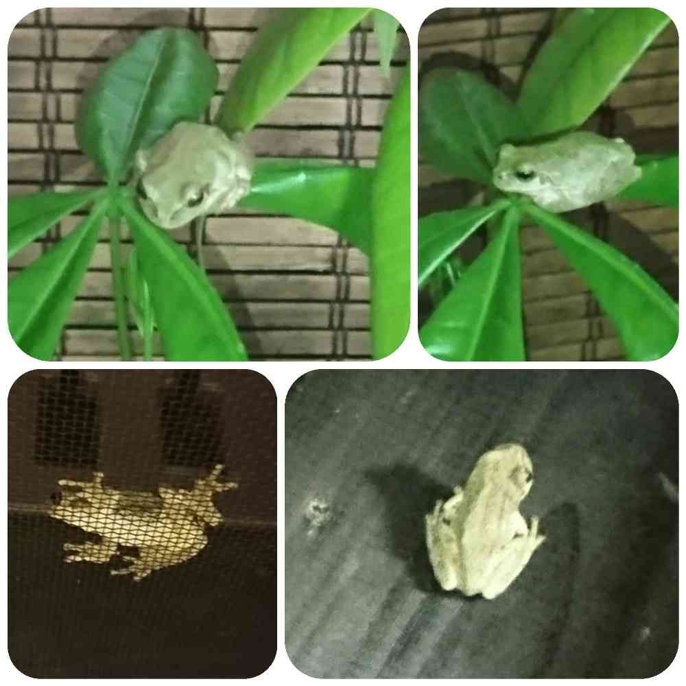 網戸の🐸ちゃん、横向きから、逆さまにもなるんです😂逆さまpicも撮りたかった😂