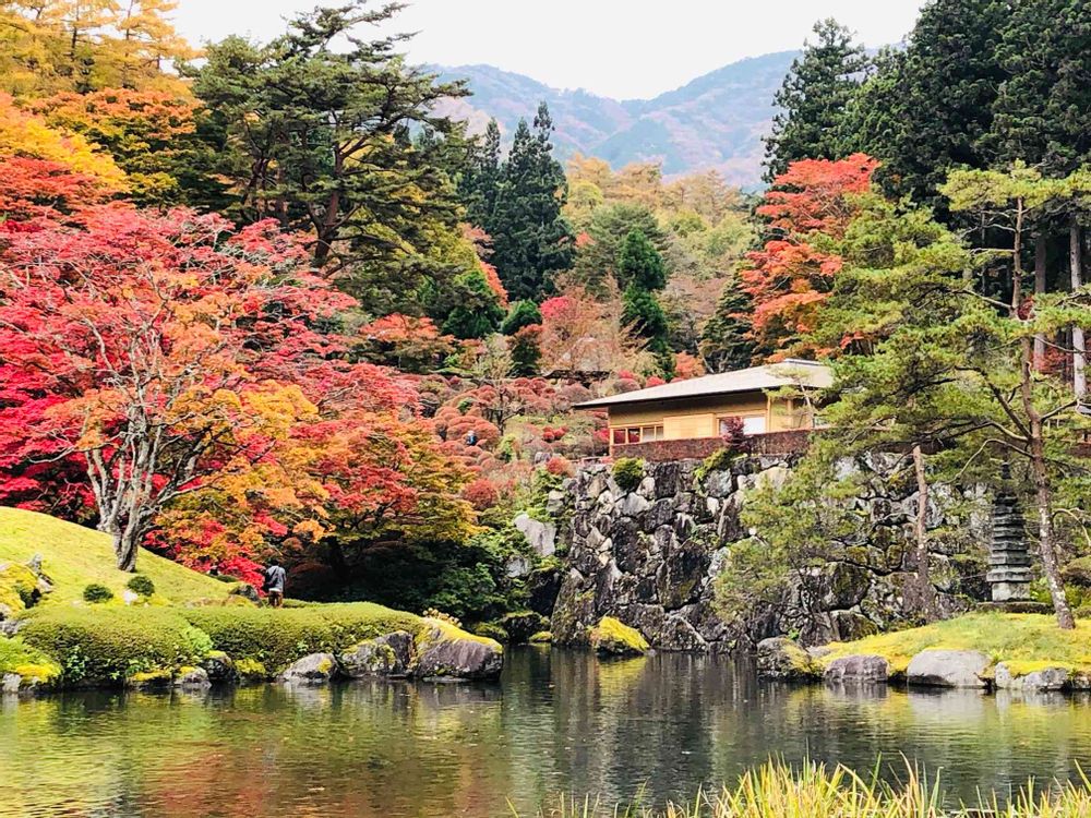 古峯園内の池と茶屋と紅葉🍁🍂