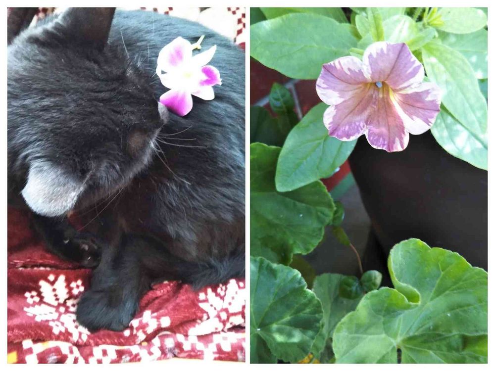 くろちゃんに、デンフェレの花を飾ってみました。🥰