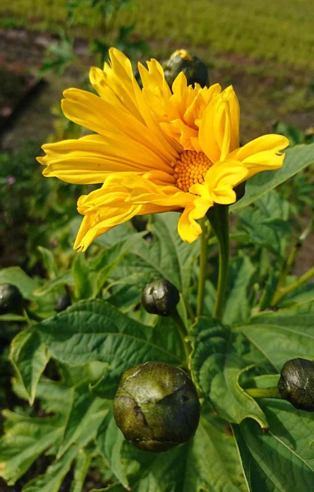 庭の皇帝ヒマワリさんの 一番花です😋…
