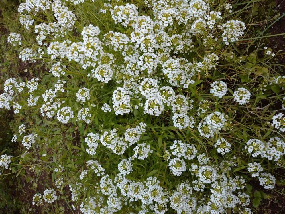 種から育てたアリッサムが畑でモリモリに咲いています。