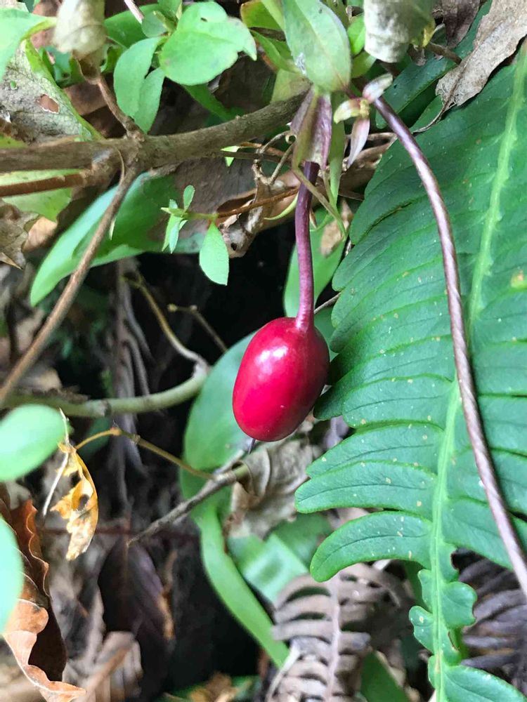 薄紫色の花の後 鮮やかな赤い実を付ける