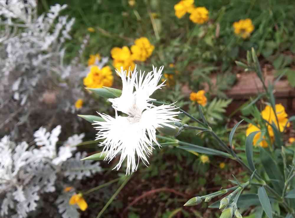 花が少なくなった花壇に~また咲いてくれたカワラナデシコの白い花✨😀💕