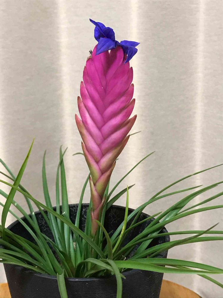 お店のチランドシアが咲いてるのを見て、初めて花が咲くのを知り、お店の人に聞いたら、たまに霧吹きでお水をやればいいよとのことで、実行してました。*\(^o^)/*