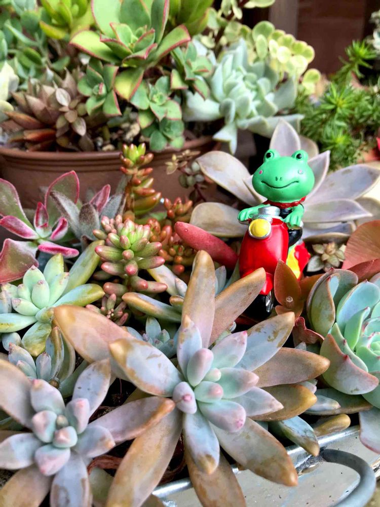 ぷくぷくというより、ごちゃごちゃです(^ー^;)朝、出勤前に、カエルさんを持って、多肉小屋へ!何とか、カエルさんもいっしょに撮影出来ました(=^^=)