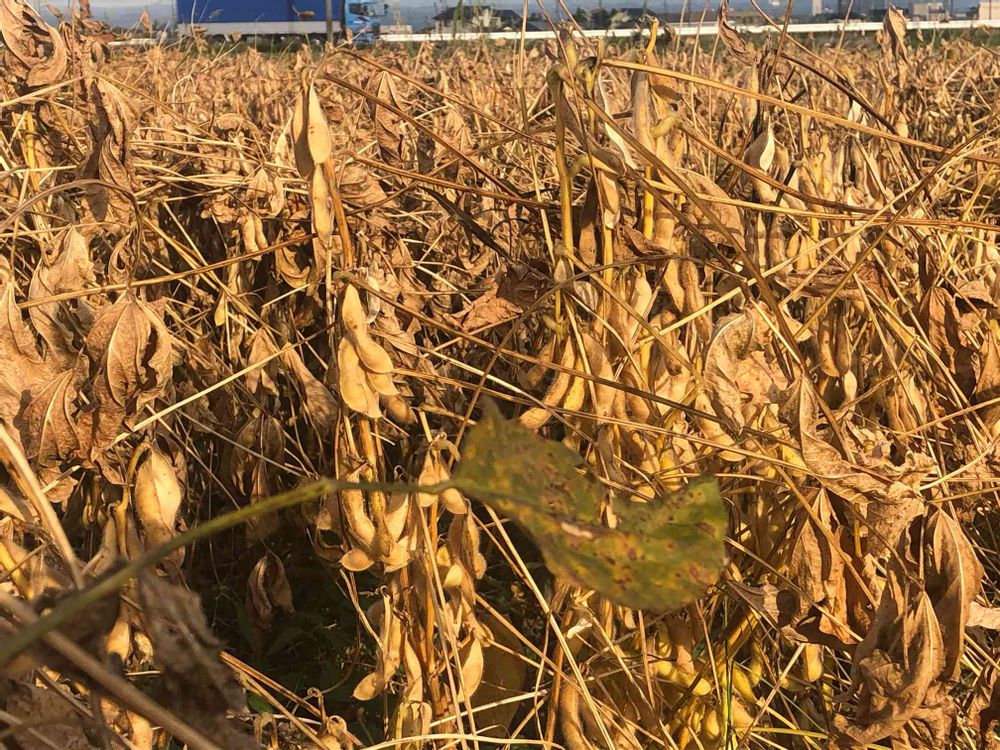 大豆畑では茶色に色づいて収穫を待っています🤗🌸