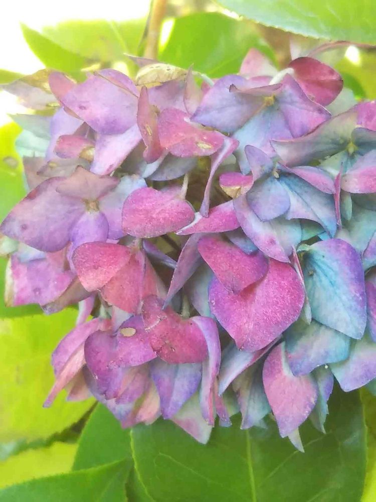 秋の紫陽花は日に当たった部分と陰になっていた部分の差が出て、