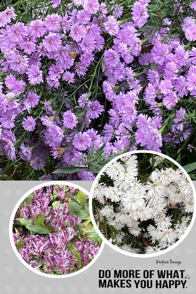 うちの日陰過ぎる庭にも この紫のクジャクアスターと白菊が満開で癒されています😃 日陰でも育ってくれて感謝です❤️
