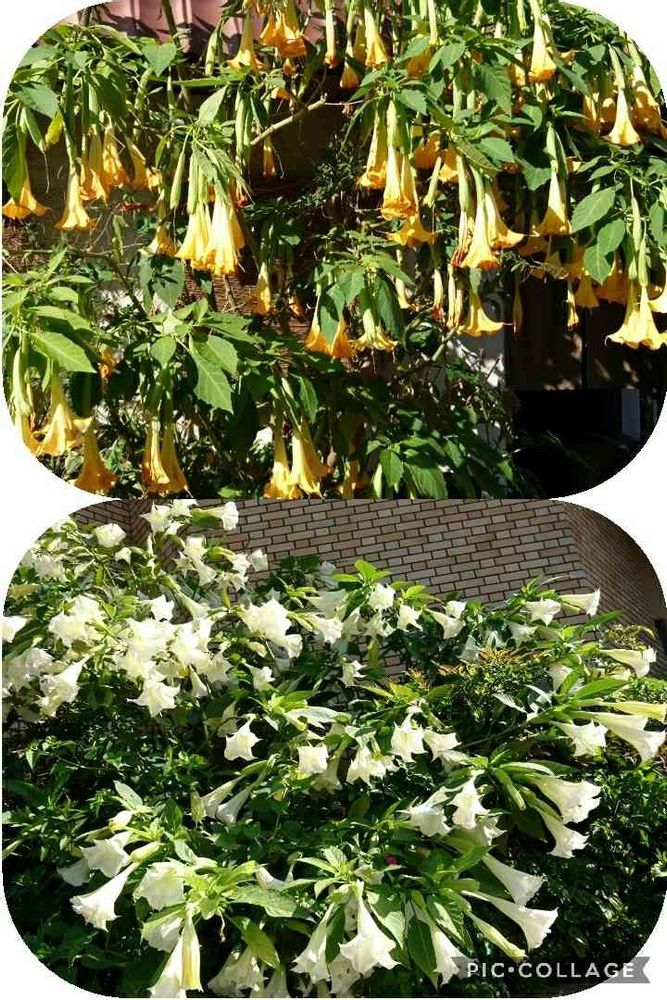 別々の所ですが、もりもりのエンゼルストランペットの黄色と白に会いました🎵