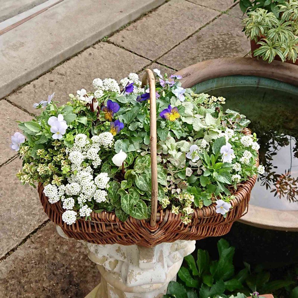 ビオラが太陽の方へ向いてしまうので、(部屋から見ると後ろ姿しか見えないので)鉢を回しても大丈夫なようにお花を配置しました🏵️