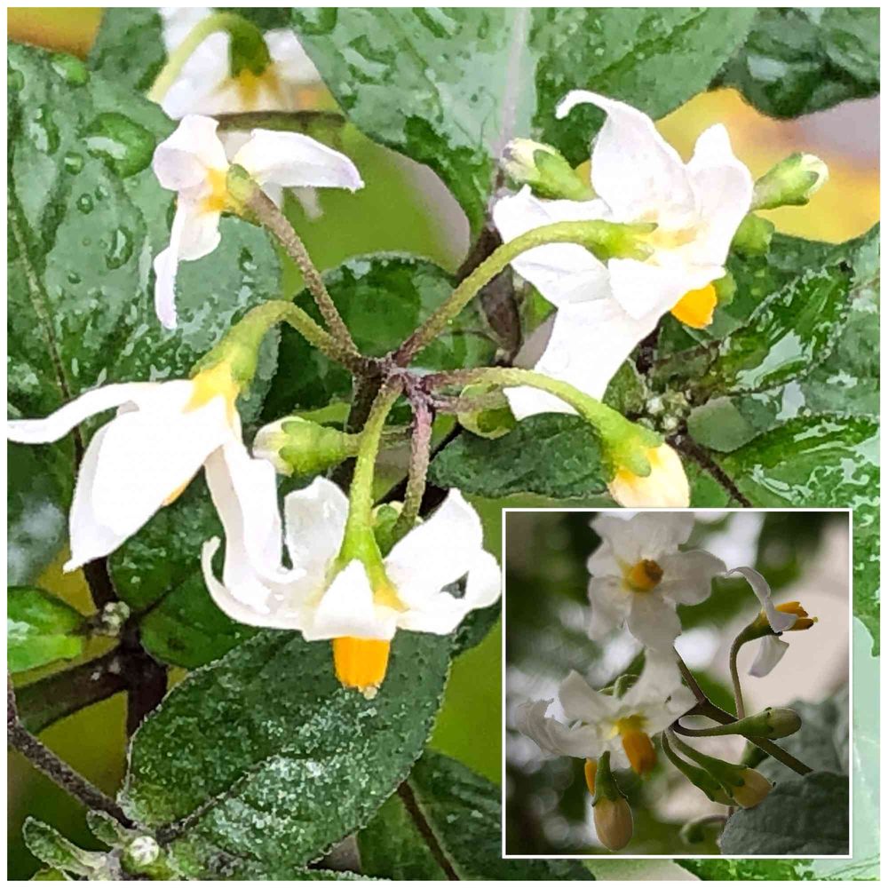 アジサイの鉢で、気づかない間に背が高く伸びてお花を咲かせていました☺️