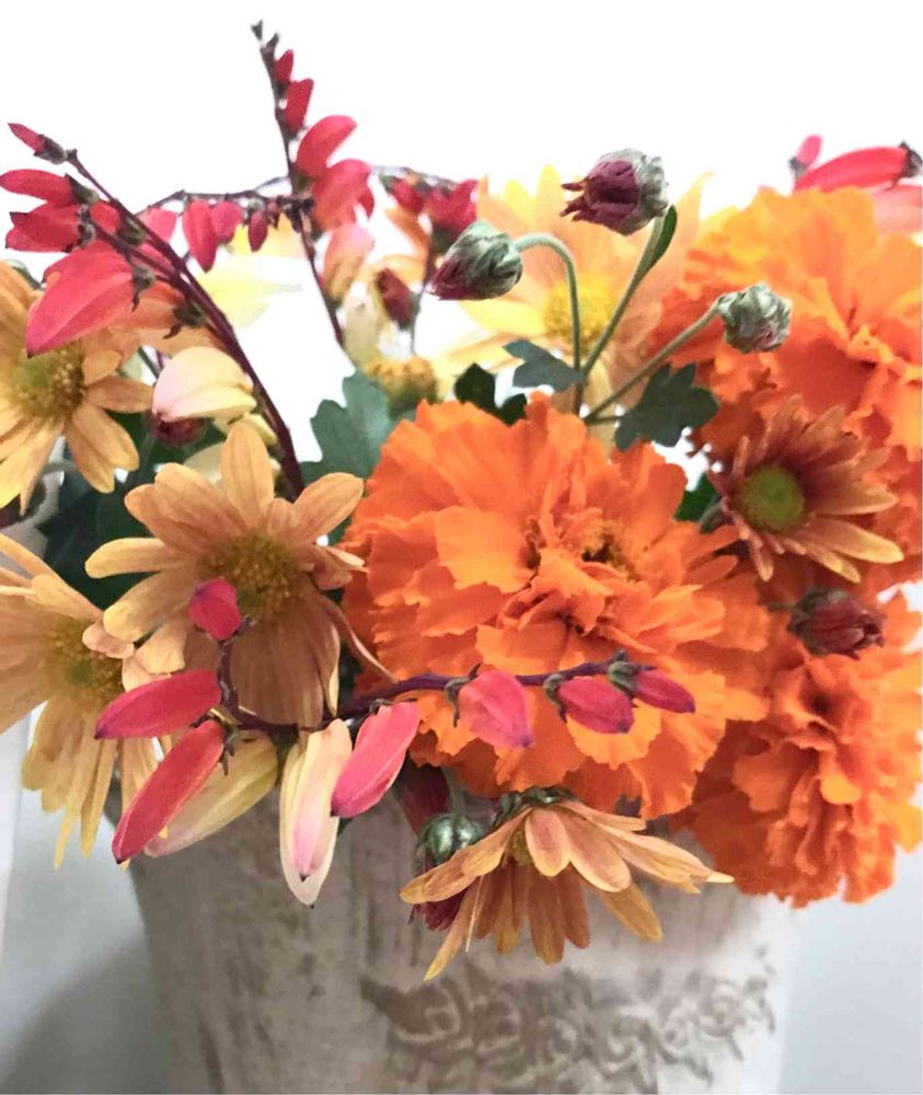 ミナ ロバータ ジャングルクイーンを切り花にしようと庭のオレンジ系のお花を集めて合わせてみました🍊