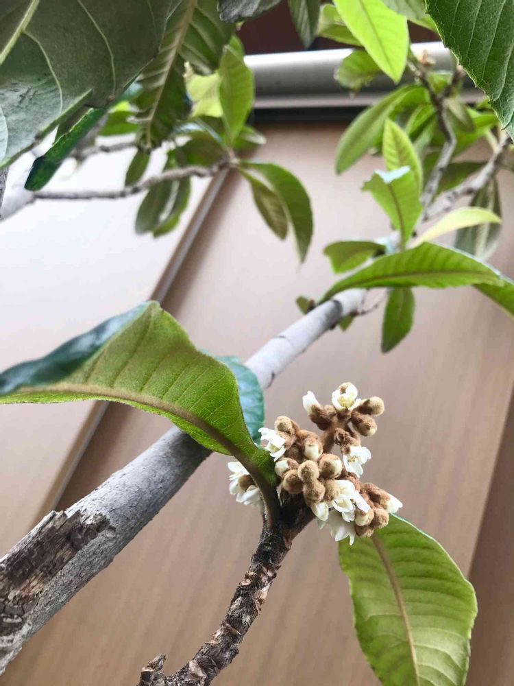 ウチも25年前に隣の人の土地に種を蒔いたビワが満開です