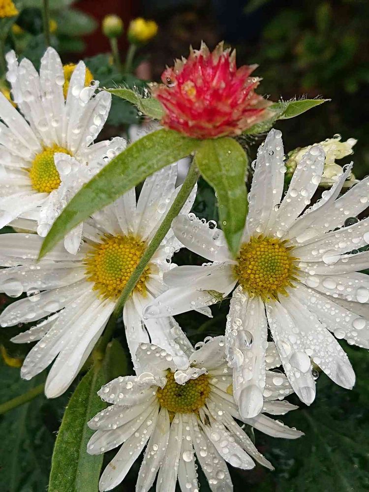 雨あがり白い菊が咲きはじめました☺️温かい雨でお花さんも喜んでまーす❣️