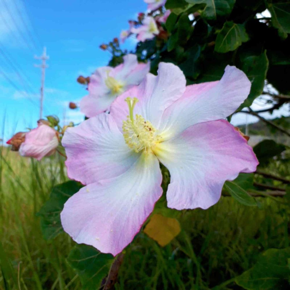 秋空に芙蓉の花がきれいでした(^^)つぼみがたくさん付いていたので、まだまだたくさんの花が咲きそうです♪