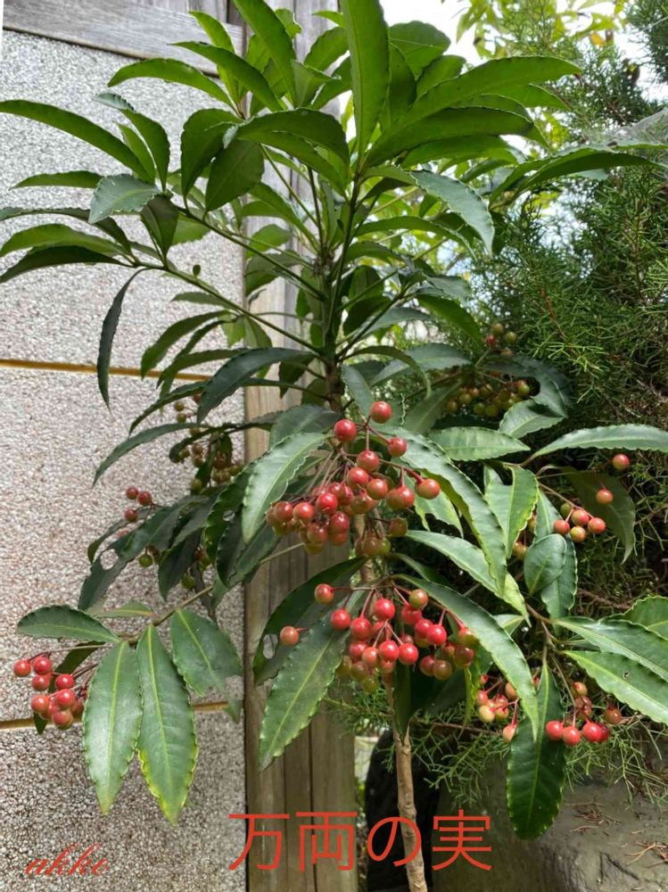 万両の実も赤く色づいてきました❣️