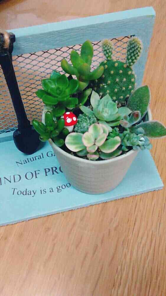 娘チョイスの多肉達の寄せ植えです🍄