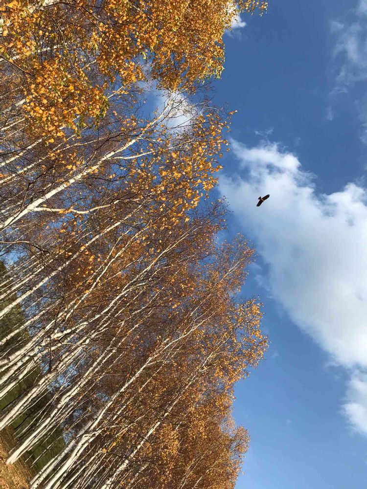 白樺コースの野原で見上げた青空高くゆったりと飛んでいる鳥に癒されましたよ😊