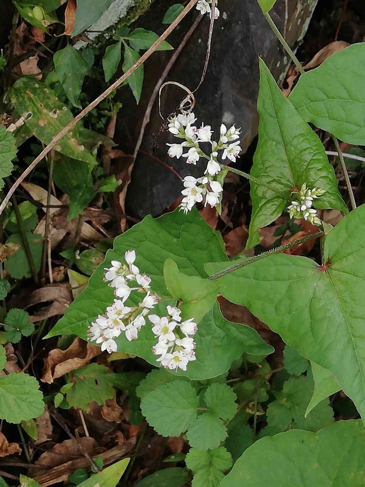道端に三角の葉と、かわいいお花が沢山並んでいました😊