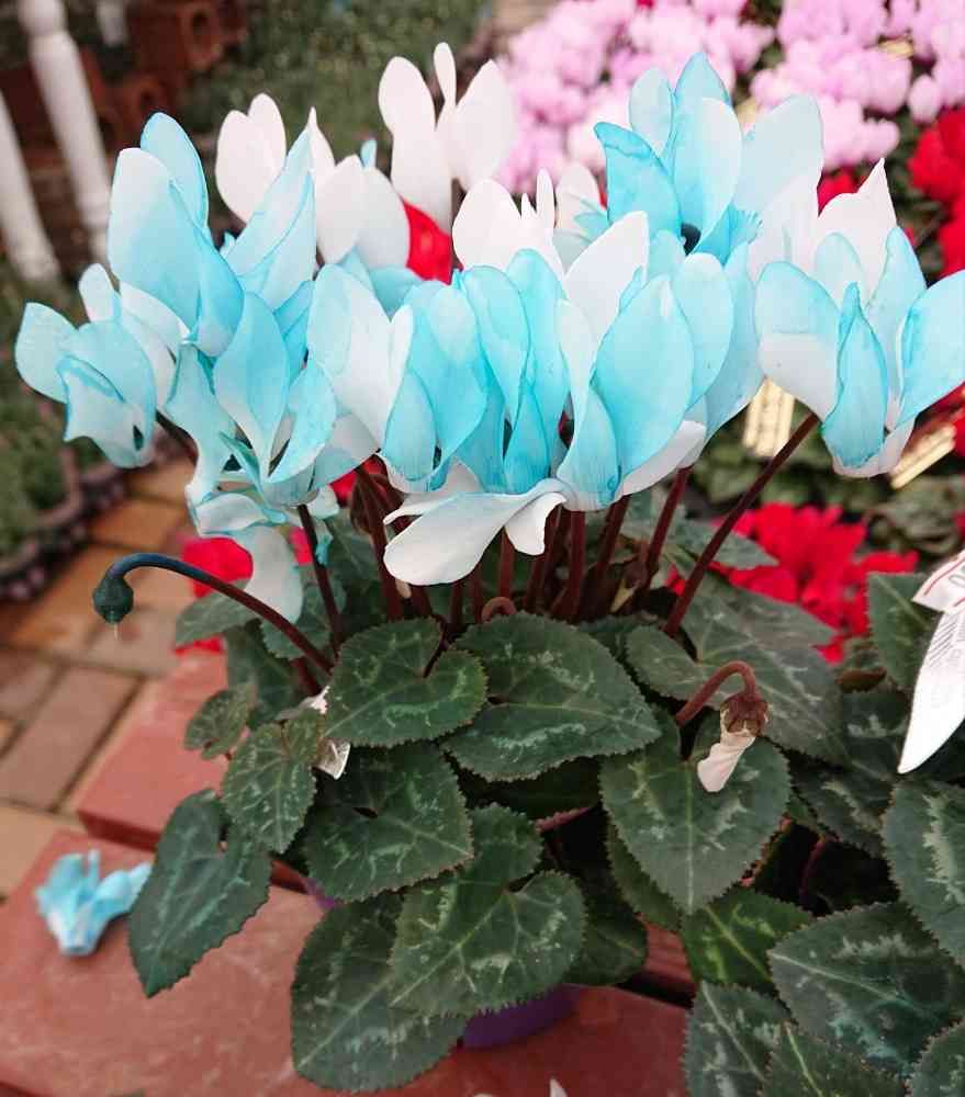 着色剤を吸った切り花は見ますが、まさかのシクラメンでビックリです👀