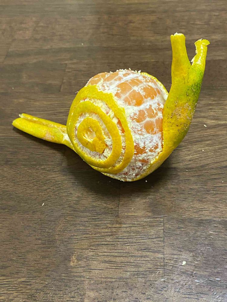 ミカンアートの本出てるのは知ってるのですが、それにしても上手に作りますね🐌🍊