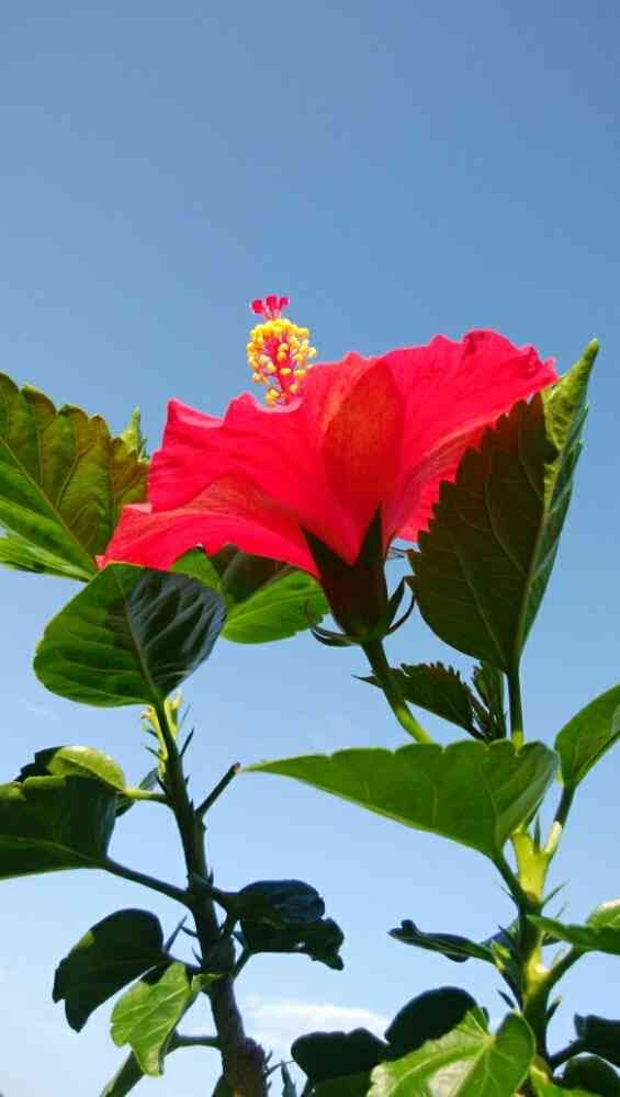 青空に赤いハイビスカス🌺