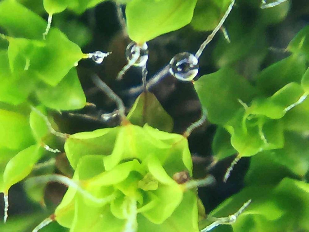毎日霜が降りるので、水滴撮影には事欠きません。これも苔。日本の自宅の苔と見た目変わらないのに、レンズで撮影すると、全く別物でした。