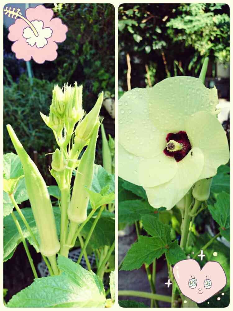 お早う😊 家の近くの産直では、花オクラが出ています。オクラの花は生でサラダでも👌🏻だし、軽く茹でるとネバネバが出るので、酢の物に使ってます👍🏻
