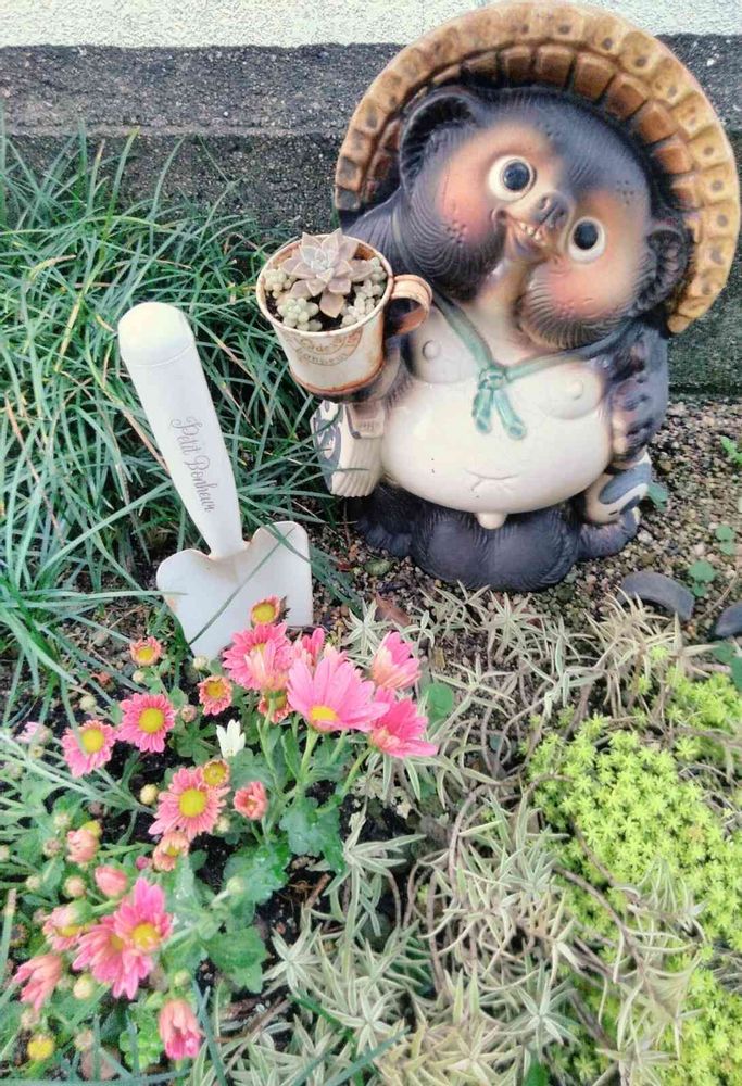 多肉持ってるタヌキさん❗良い感じですネ😁
