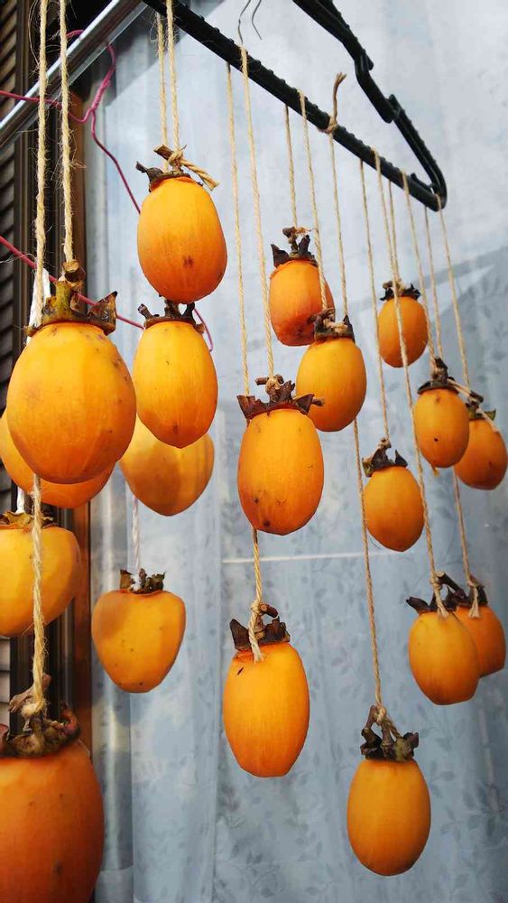 こんばんは。私も実家でつるし柿を5つほど貰って😋はじめてやってみました。1ヵ月ほど干してたらみるみるうちに小さくなって😄食べたら甘くて美味しかったです。😋