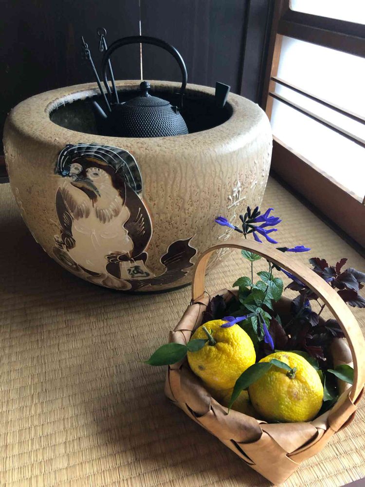 畳に火鉢と柚子の和の雰囲気が落ち着つきます😌✨