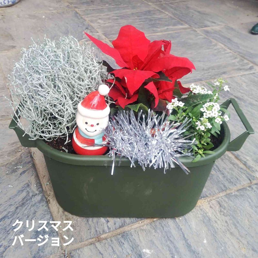 ポインセチアは根が繊細で寄植えには向かないから容器ごと埋め込んでます。