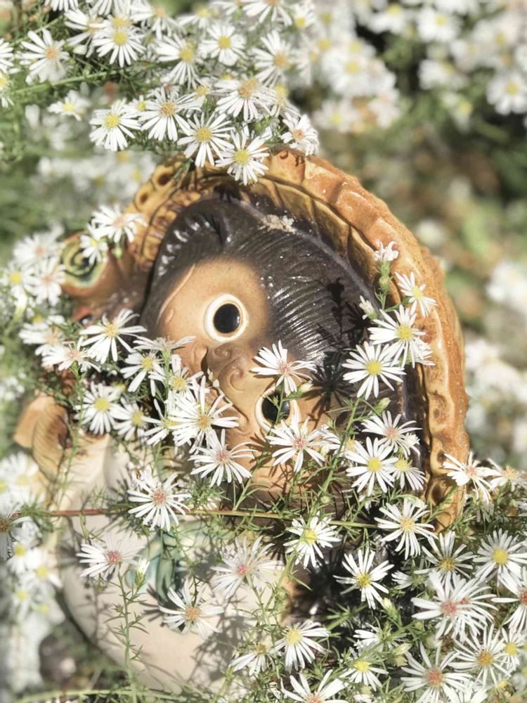 クジャクソウに囲まれて、モデルさんのような美人のタヌキさんですね♥おめめが、キュート💕