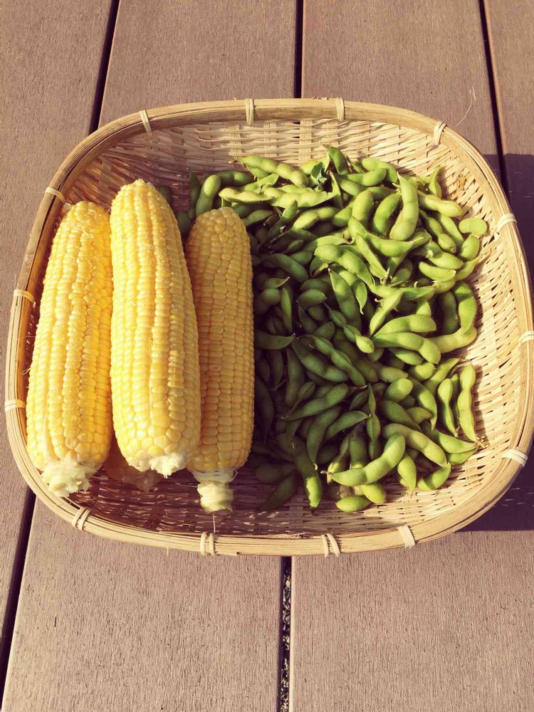 トウモロコシと枝豆をすべて収穫しました。枝豆は熟しすぎたかなという感じです🙂