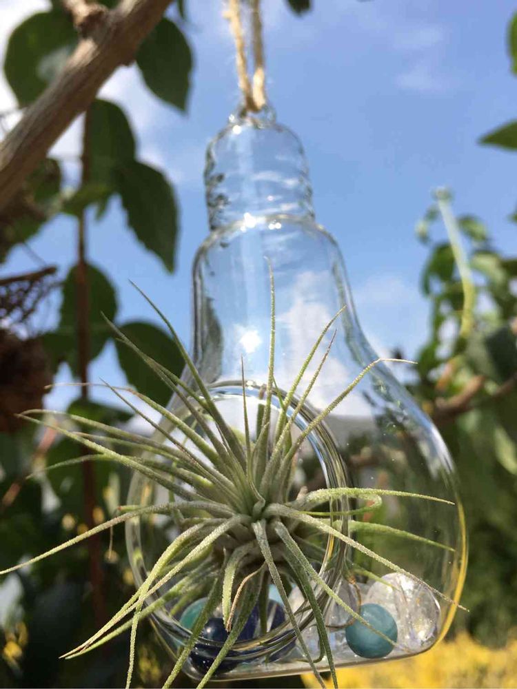 エアプランツとパワーストーンとガラスの電球から見える青空が凄くいい感じだね💕