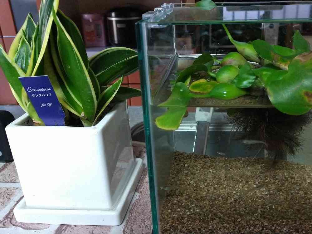 家の中のサンスベリアと、メダカちゃんです😁