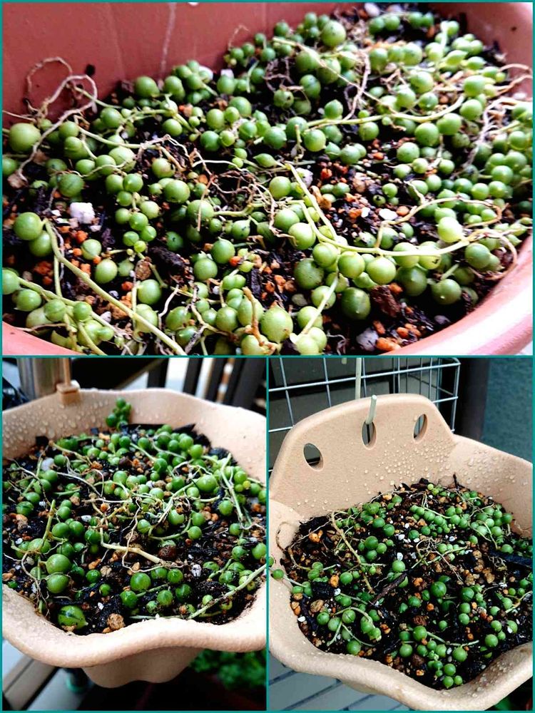 最近やっとネックレスが垂れてきて楽しみだったけど、ちょうど鉢の中もモリモリだったし、いい機会だと思って3つの鉢に分けました。