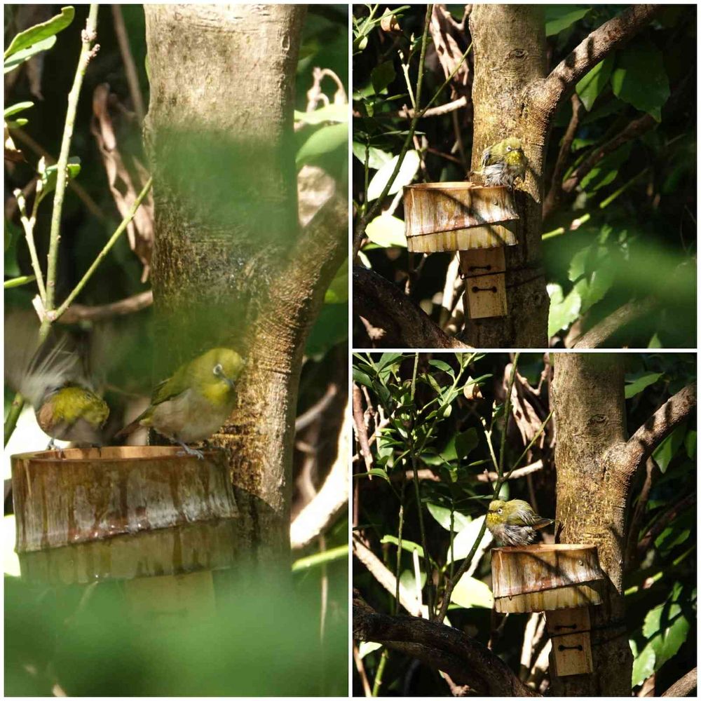 先日は、順番に仲良く交代して次から次でしたが、今日は二羽一緒に入って居ました。