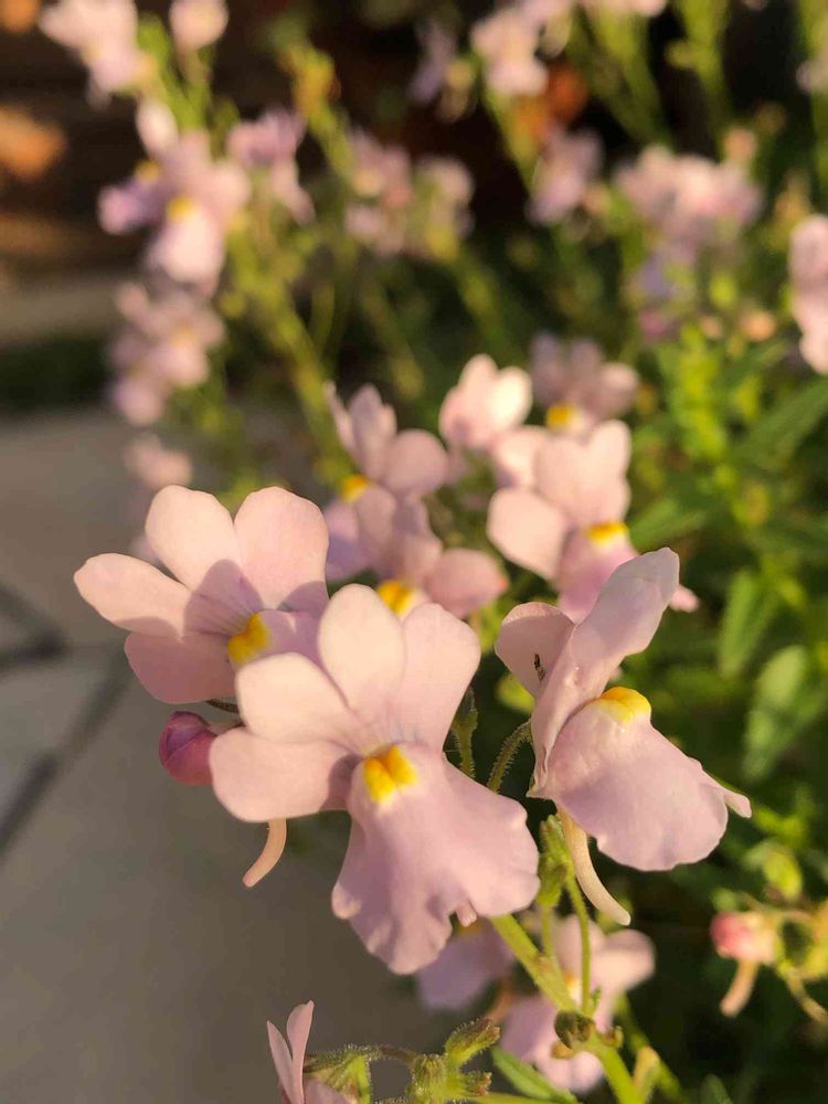 玄関までのアプローチに淡いピンク色のネメシアが咲いています🌸