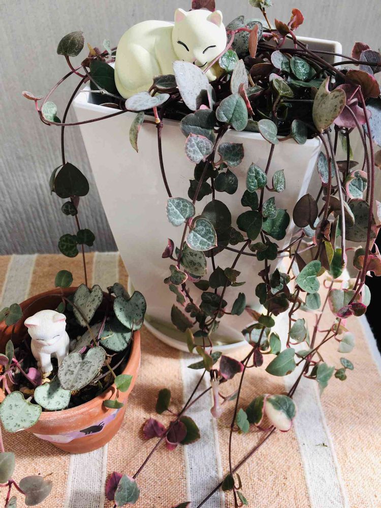 長く伸びたレディ ハート❤さんを✂️チョンパしていろんな大きさの鉢に挿しています(元親さんは別にいます😊)