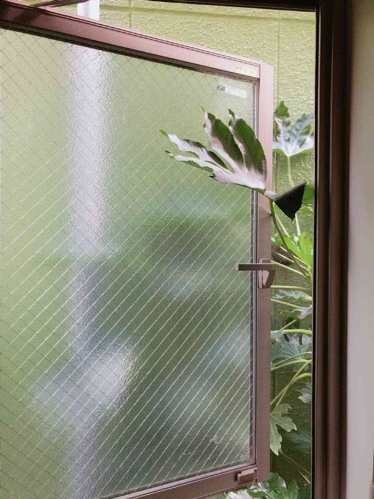 ヤツデの葉が窓と網戸の間に割り込んでくる時があります。