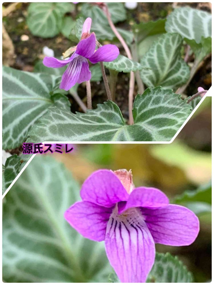 斑入り源氏スミレ、花期は、春のはずですが、今頃咲いてます🥰