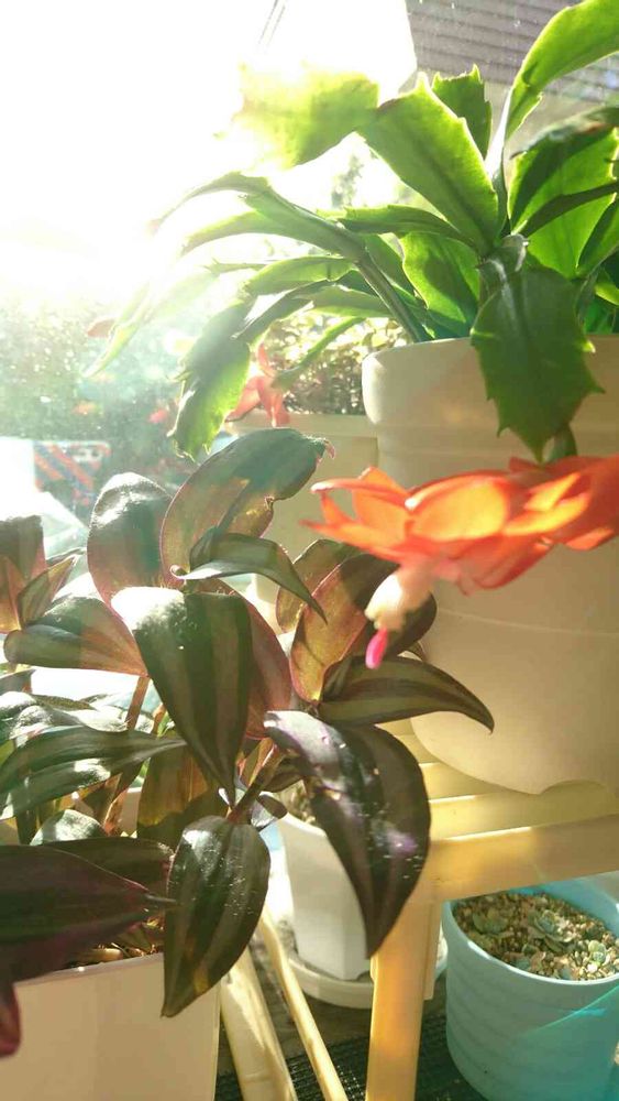 みぞれのなか、一瞬日が射し、頂いたシャコバサボテンのオレンジが輝いていました❗