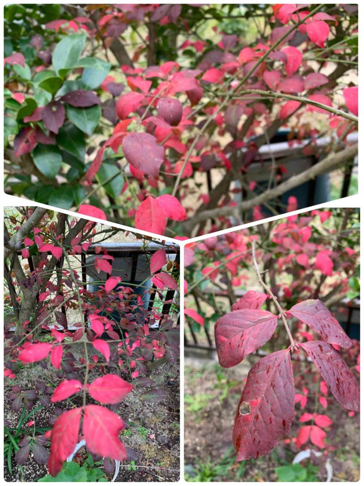 突然現れた植物😆 また鳥が運んできたのだろうけど、こんなに綺麗に紅葉するこの木はなんでしょう。