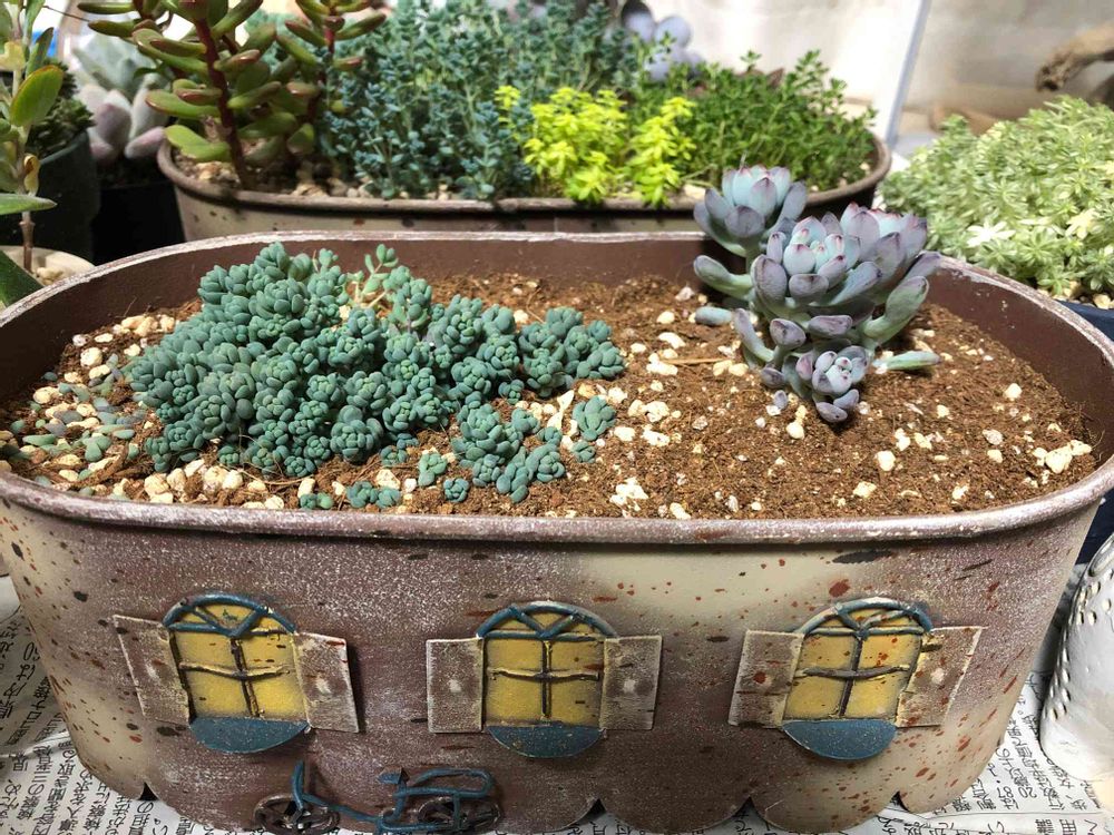 旦那さんがずーっと欲しいと言っていたパープルヘイズを連れて帰ってきたよ🧸隙間にもモリモリ増やす予定🍀モリモリセダムの森が大好き😘
