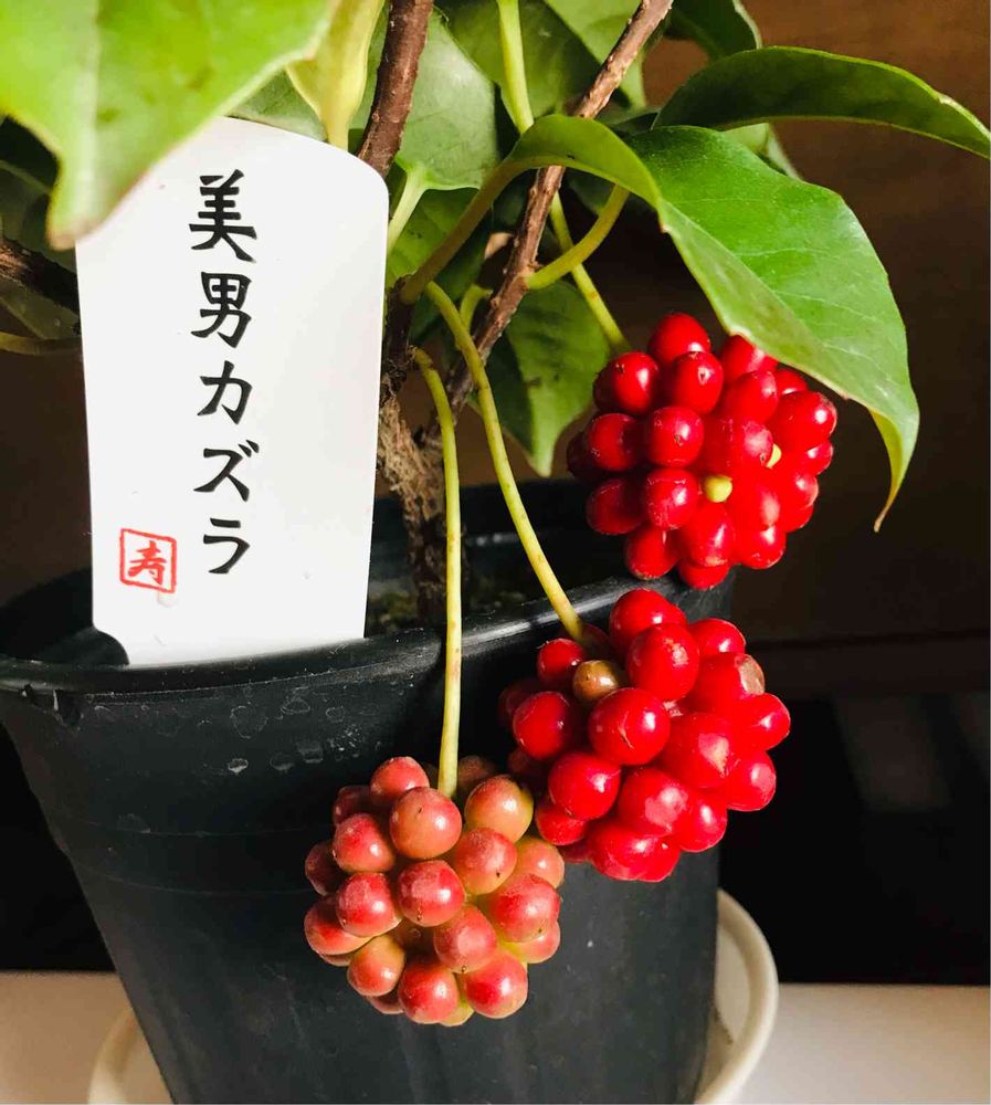 美男かずらを、我が家に連れて帰って来たものの、育て方は、これからです。今は、窓際の棚の上で、眺めています。
