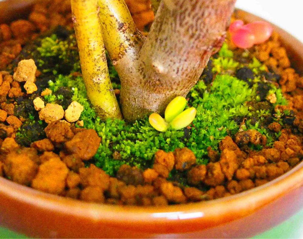 多肉盆栽、宝樹の根元の苔から赤ちゃんが❤️